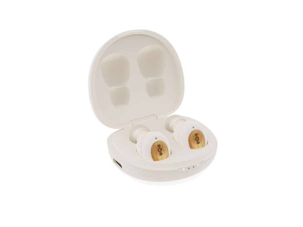 MARLEY Champion - Bezdrátová sluchátka Champion TWS s dobíjecím pouzdrem jsou vyrobena z udržitelných zdrojů.