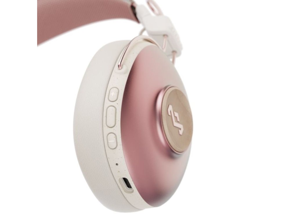 Bezdrátová sluchátka, přes hlavu, s mikrofonem, výdrž baterie až 34 h, USB-C nabíjení, 40mm dynamické měniče, měkké pěnové náušníky, z udržitelných materiálů, bílorůžová