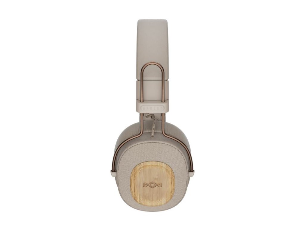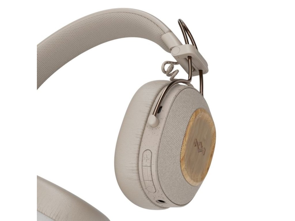 Bezdrátová sluchátka, přes hlavu, s mikrofonem, výdrž baterie až 50 h, USB-C nabíjení, 40mm měniče, měkké pěnové náušníky, z udržitelných materiálů, béžová s dřevěnými prvky