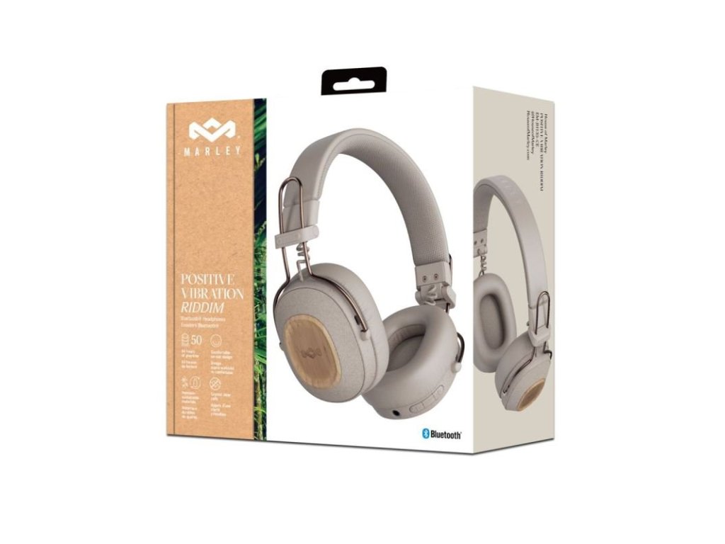 MARLEY Positive Vibration Riddim BT, sluchátka přes hlavu s ovladačem a mikrofonem - Užijte si dlouhotrvající poslech s čistým zvukem a ekologickým designem.