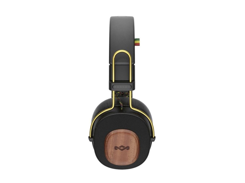 Bezdrátová sluchátka, přes hlavu, s mikrofonem, výdrž baterie až 50 h, USB-C nabíjení, 40mm měniče, měkké pěnové náušníky, z udržitelných materiálů, černá s dřevěnými prvky a rasta motivy