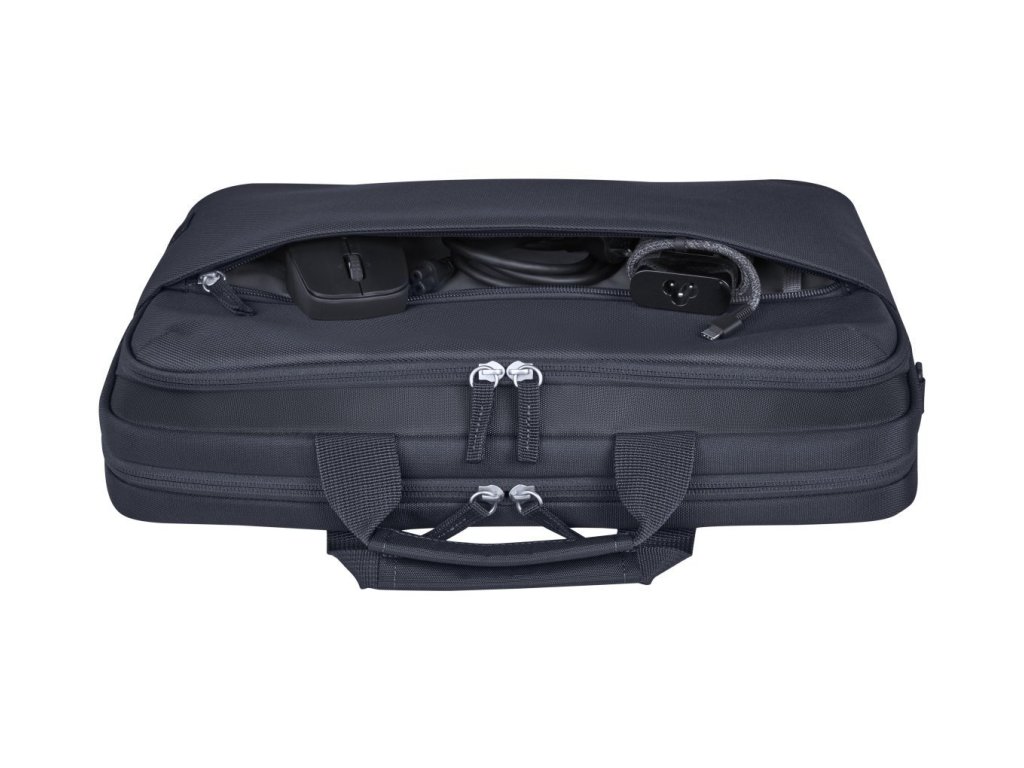 Brašna na notebook • Pro notebooky do 14" • Vyrobena z recyklovaných materiálů (udržitelná) • Objem 9 litrů • Dvě hlavní přihrádky + kapsy na příslušenství a dokumenty • Popruh pro upevnění na zavazadla • Max. rozměr notebooku 34,0 x 22,0 x 2,8 cm