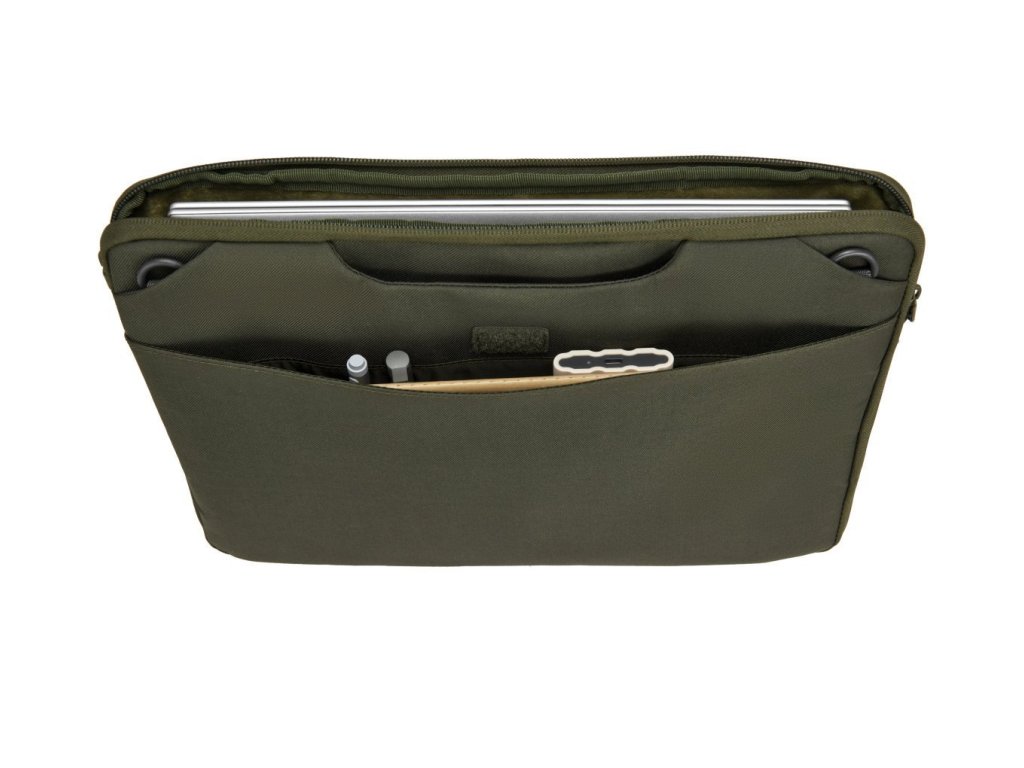 Univerzální pouzdro (Modular Sleeve) pro notebooky do 14" • Design 2v1: Tenká taška (skrytá držadla) / Taška přes rameno (popruh) • Max. rozměr ntb: 34x24x2.2 cm • Tenké a lehké • Rozměry pouzdra: 35.5x26x22 cm • Hmotnost 380 g