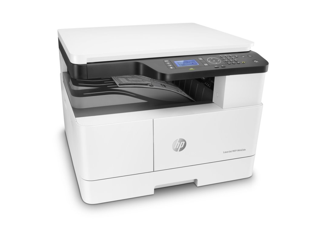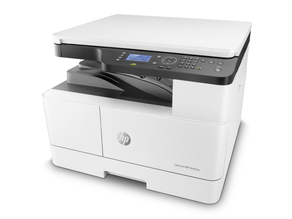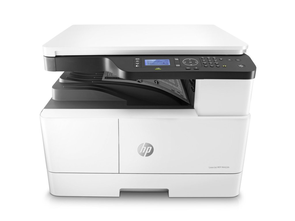 HP LaserJet MFP M442dn • černobílá multifunkční laserová tiskárna • A3 • tisk, kopírování, skenování • 24 str./min (A4), 13 str./min (A3) • 1200 x 1200 DPI • USB 2.0, Ethernet • automatický duplex • vstup 350 listů • 4řádkový LCD displej