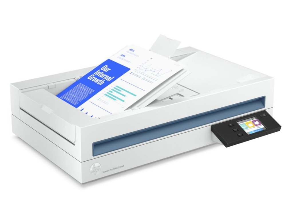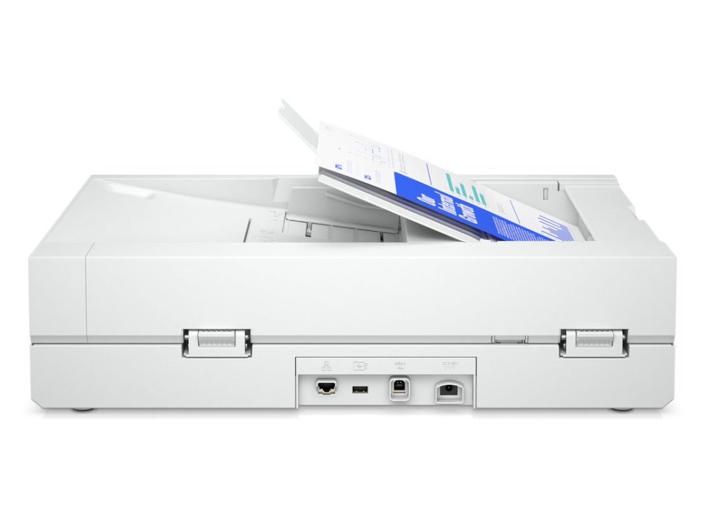 Skener formátu A4 s rozlišením až 1200 x 1200 obrazových bodů a optickým rozpoznáním znaků. Rychlost skenování činí až 40 stran za minutu. Pro více stránkové dokumenty oceníte automatický podavač dokumentů a možnost oboustranného skenování. Doporučená denní zátěž skenování činí 6000 stran. Připojení k počítači lze jednoduše realizovat pomocí USB, k síti drátově přes RJ-45 port nebo bezdrátově přes Wi-Fi. Uložení dat je také možné na USB disk, který připojíte přímo ke skeneru.
