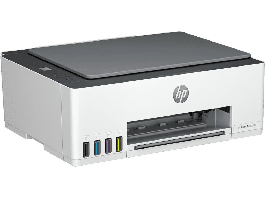 HP Smart Tank 580 All-in-One • termální inkoustová tiskárna s tankovým systémem • A4 • tisk, kopírování, skenování • 12/5 str./min (čb/bar.) • 4800 x 1200 DPI • USB 2.0, Wi-Fi (samoopravné), Bluetooth LE, Wi-Fi Direct • manuální duplex • vstup 100 listů