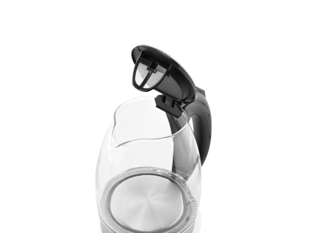 Skleněná rychlovarná konvice s vnitřním osvětlením, příkonem 2 200 W a filtračním sítkem proti usazeninám