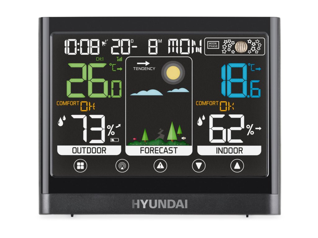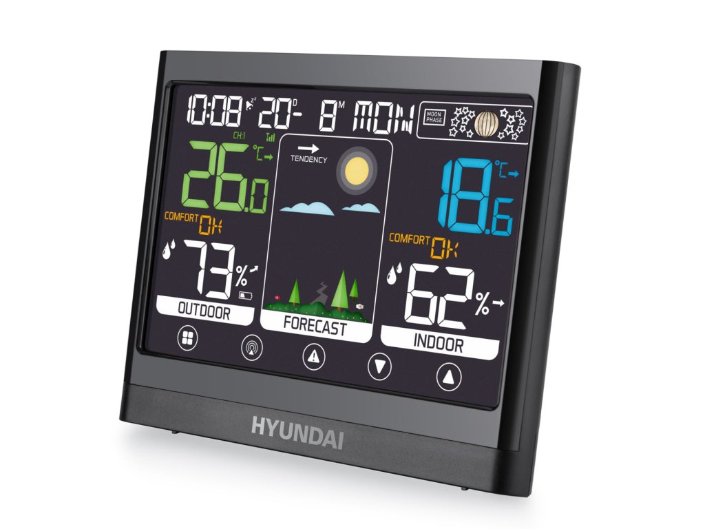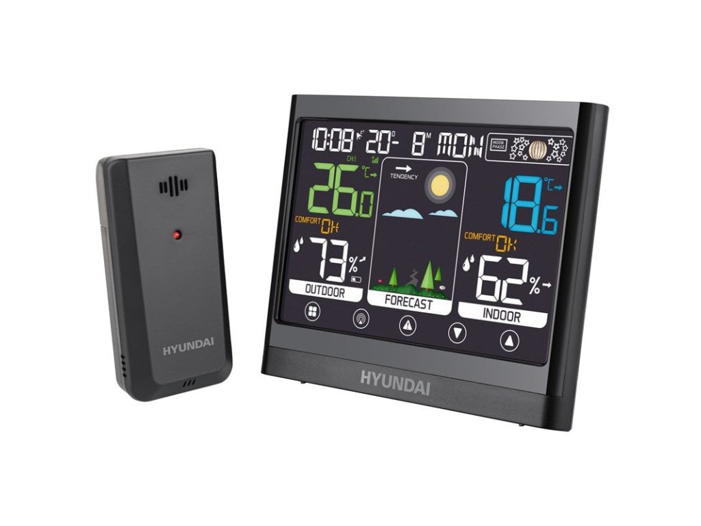 Meteostanice s venkovním čidlem, barevný displej, čas, budík, max. a min. vnitřní/venkovní teploty a vlhkosti vzduchu, černá