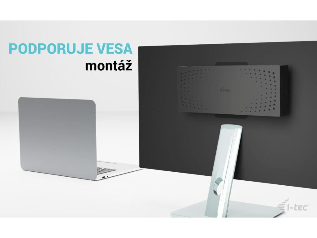 Dokovací stanici lze nainstalovat za monitor (pokud podporuje standardní držák VESA), pomocí i-tec VESA mount.