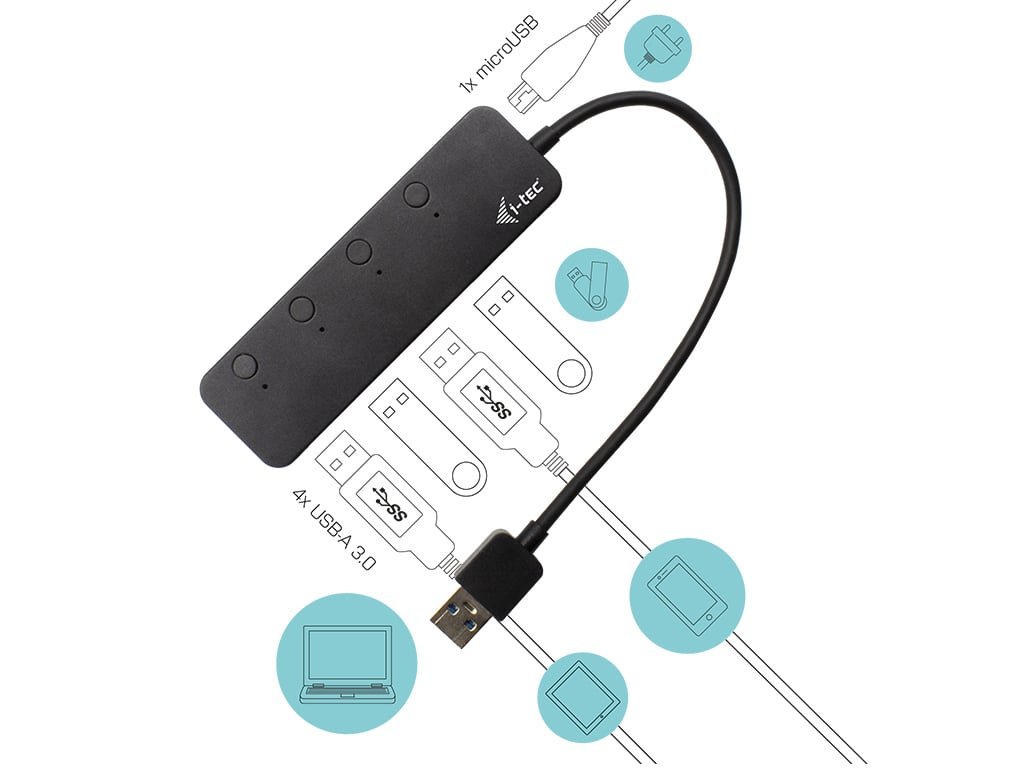 i-tec USB 3.0 Metal HUB 4 Port s vypínači na jednotlivých portech