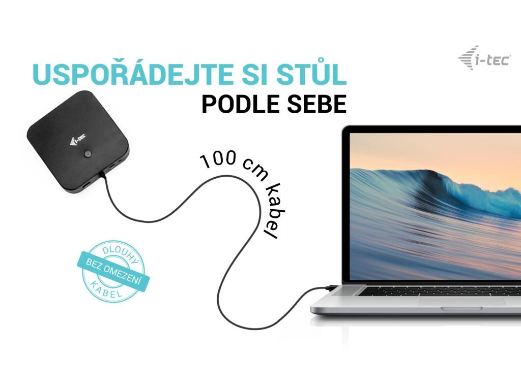 • Poznámka: Napájecí zdroj není součástí dodávky. Dokovací stanici lze používat s napájecím zdrojem dodávaným s notebookem nebo lze napájecí zdroj zakoupit samostatně, například i-tec CHARGER-C112W/UK Alternativně můžete zakoupit produkt C31TRI4KDPDPRO100/UK, který již obsahuje napájecí zdroj.