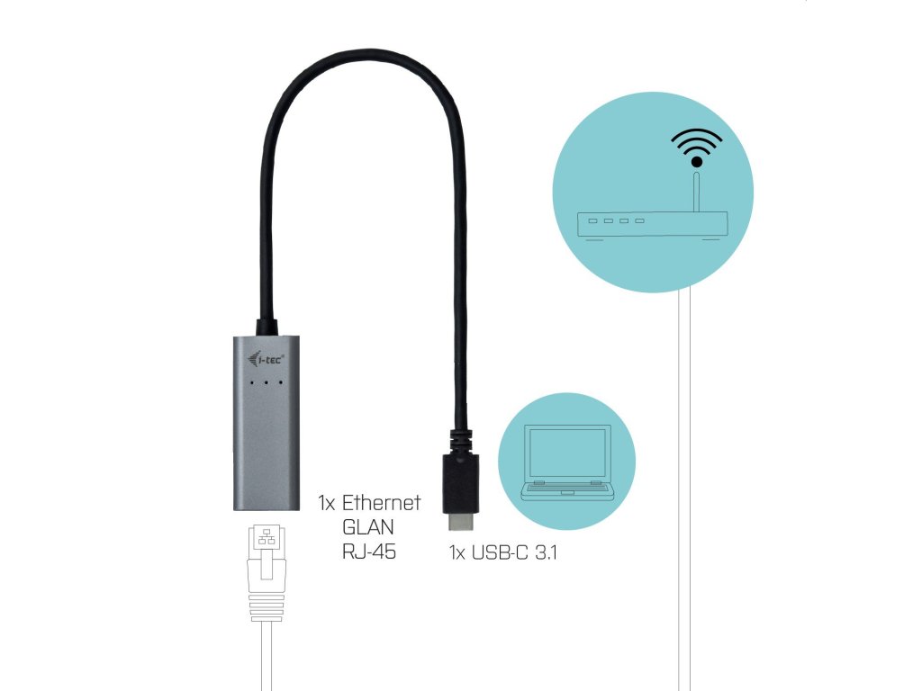 • i-tec USB-C Gigabit Ethernet adaptér s kabelem (28 cm)