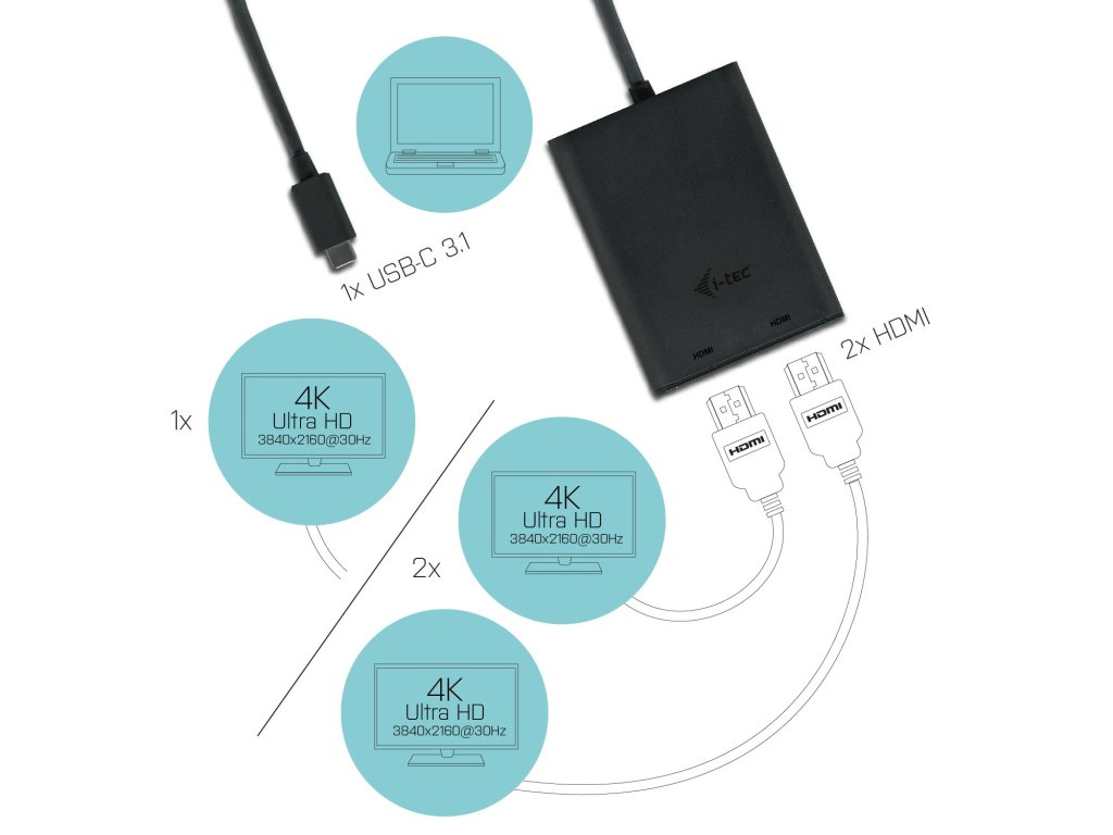 • i-tec USB-C 3.1 Dual 4K HDMI video adaptér s kabelem (30 cm)