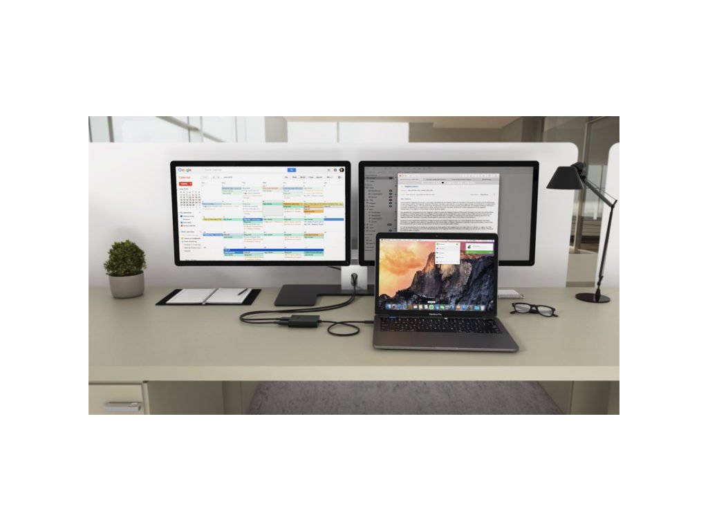 Rozšiřte svou pracovní plochu o dva externí HDMI monitory nebo připojte projektory či televizory s HDMI rozhraním k vašemu notebooku, tabletu nebo PC přes nový USB-C nebo Thunderbolt 3 konektor. Adaptér podporuje přenos 4K Ultra HD rozlišení až 3840 x 2160 pixelů včetně audio signálu.
