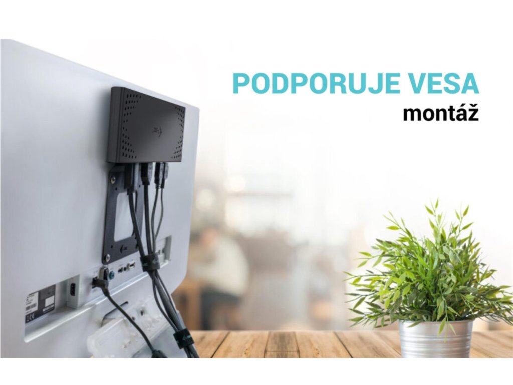 • Dokovací stanice je kompatibilní pro vertikální montáž za monitor s podporou montáže VESA