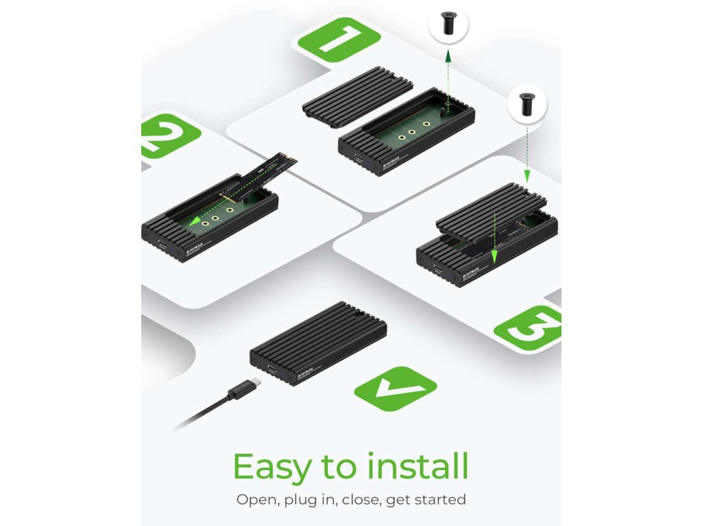 Požadavky na systém: Jeden volný port USB 3.2 Gen 2x2 Type-C® nebo jeden volný pprt USB4® Gen 3x2. Skříň poskytuje pouze plnou rychlost přenosu dat
