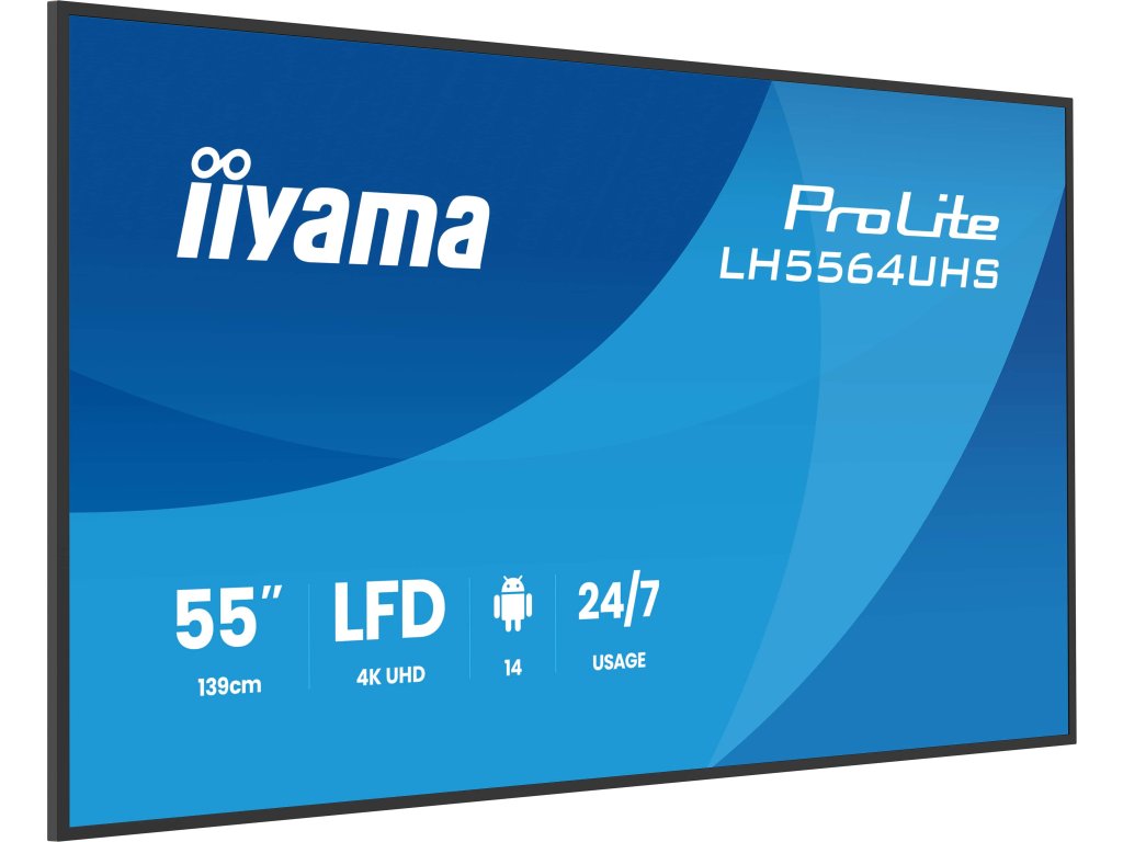 LCD displej, 55" VA, LED podsvícení, 3840x2160, 5000:1, 500cd, 6,5ms GtG, 3x HDMI, USB-C, USB, LAN, WiFi, repro, VESA 400x400, provoz 24/7, Android 14 OS, iiSignage2, iiControl, iiShare, EShare, FailOver, TeamViewer, PDF & Media Player, iiBrowser