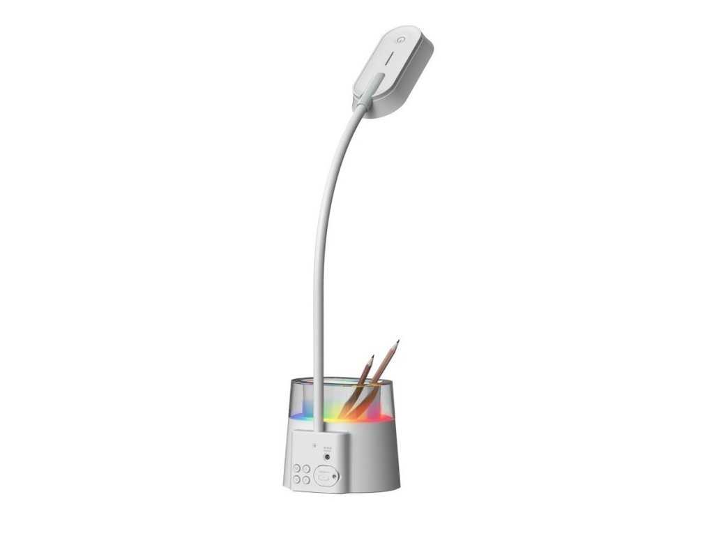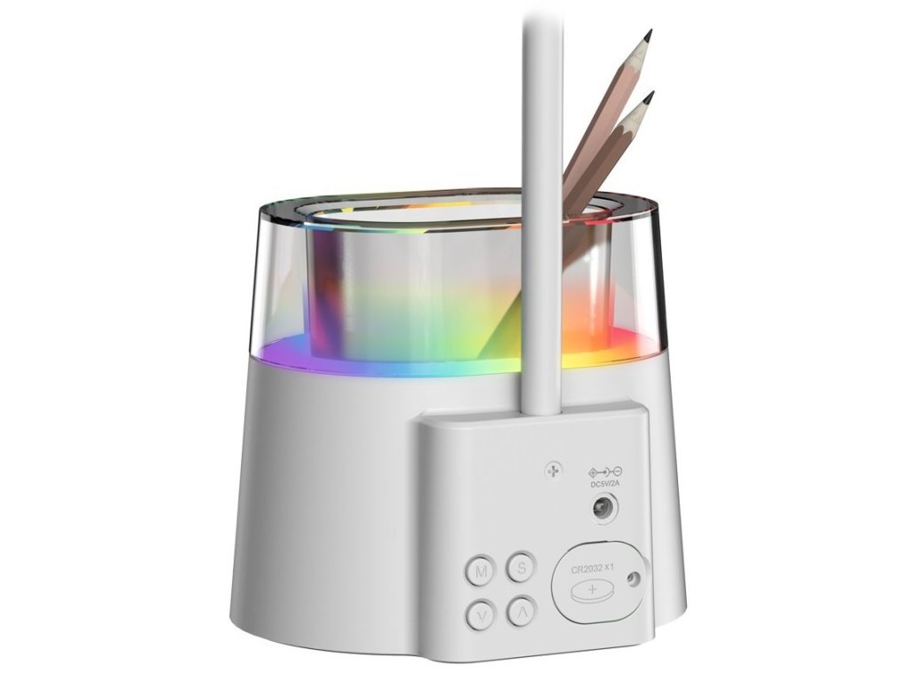 LED stolní lampička s praktickým digitálním displejem a s efektním RGB podsvíceným držákem na tužky nebo dálkové ovladače. Nabízí možnost volit mezi teplým, chladným a přirozeným odstínem světla a třístupňové stmívání světla. LED displej disponuje dvoustupňovým nastavením jasu i možností úplného vypnutí. K dispozici je také volitelné automatické vypnutí svícení po 15/30/45 minutách.