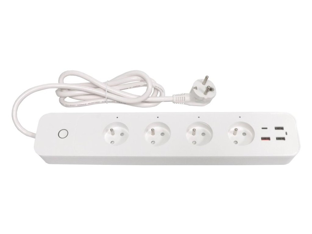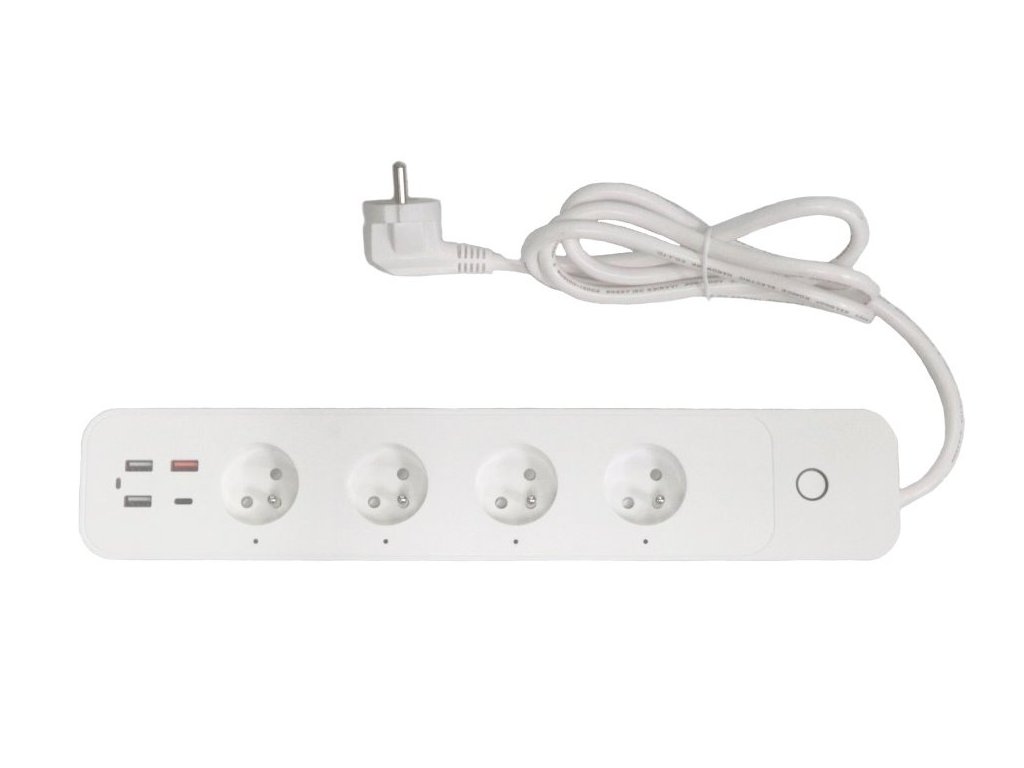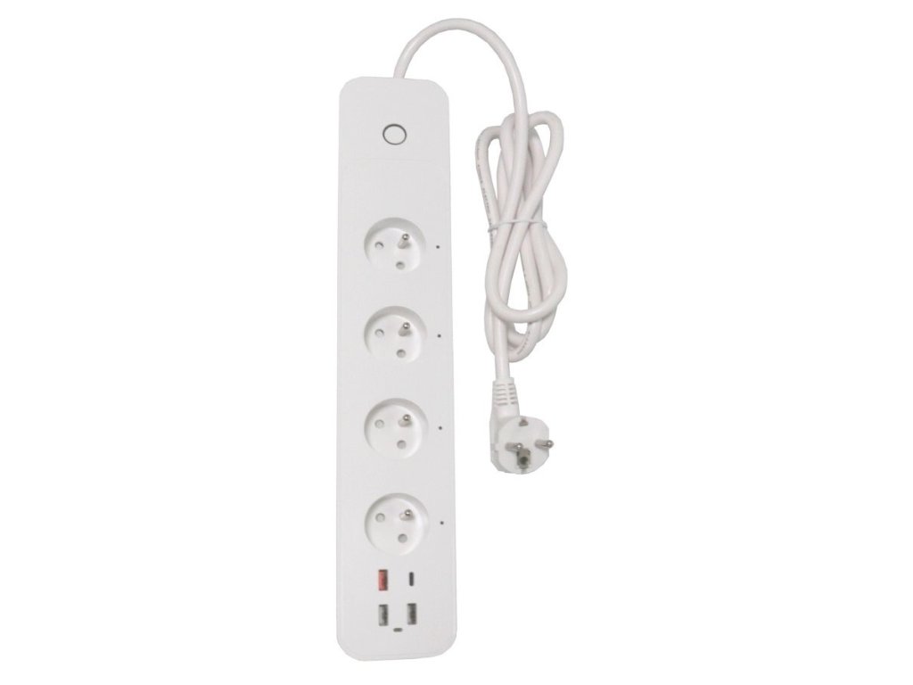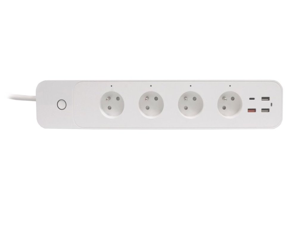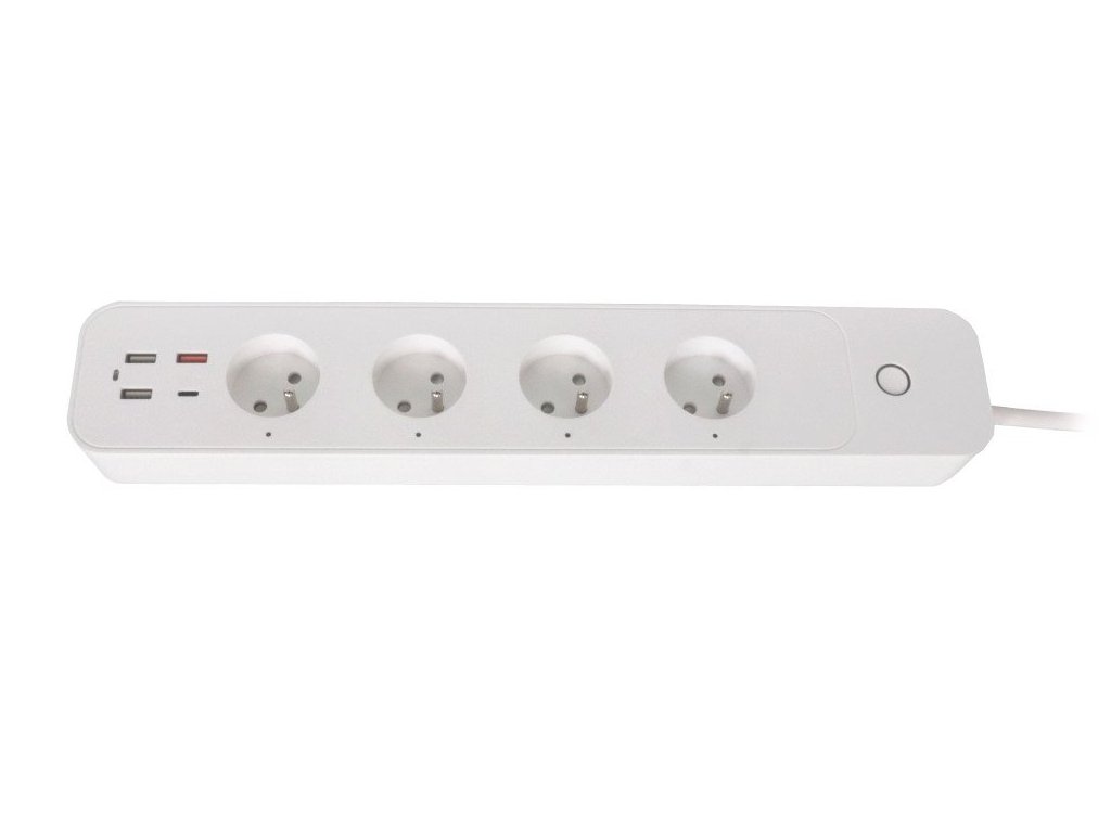 Kompaktní prodlužovací přívod se čtyřmi zásuvkami, třemi porty USB 2.0 a jedním portem USB-C s podporou bezdrátového Wi-Fi rozhraní a hlasového ovládání Amazon Alexa a Apple Siri. Lze s ním tedy připojit nejen elektrické spotřebiče, ale současně nabíjet až čtyři mobilní zařízení do max. celkového nabíjecího proudu 5,4 A. Samozřejmostí je také ochrana proti přetížení a zkratu.