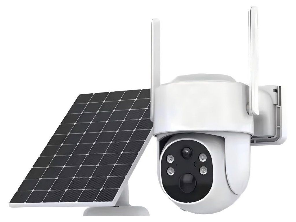 Chytrá kamera venkovní, TUYA, WiFi, bílá, solární panel 3W, baterie 6000mAh, detekce pohybu, PIR senzor, vestavěný mikrofon, vestavěný reproduktor, siréna a cloud platforma, s rozlišením 2560 × 1440 px, zorný úhel 360 °, rotace PAN 355°TILT 90°, noční vidění s max. dosvitem 5-8 m, slot pro MicroSD kartu max. 128 GB, aplikace Immax NEO PRO v 60 jazycích kompatibilní s iOS, Android, s hlasovými asistenty Amazon Alexa, Apple Siri zkratky, Google Assistant a dále se systémy TUYA, LIDL