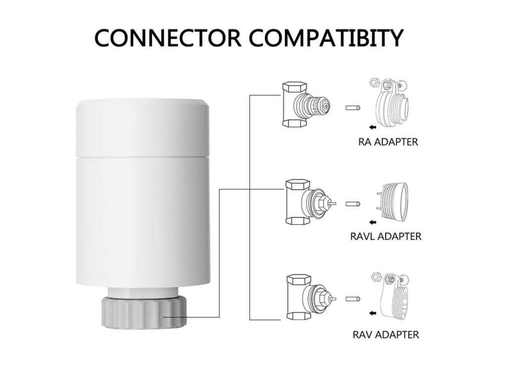 Chytrá programovatelná Immax NEO termostatická hlavice na radiátory , TUYA, Zigbee, týdenní a denní programování, 6 volitelných režimů, kalibrace teploty, dětský zámek, kompatibilní s ventily typu RA, RAV a RAVL