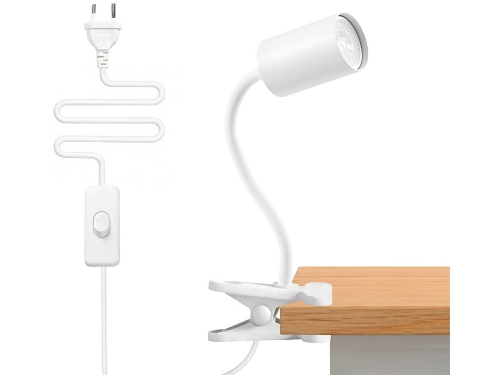 Svítidlo bez světelného zdroje, nástěnné, klipové, flexibilní hlava, patice GU10, max. 9W, bílé