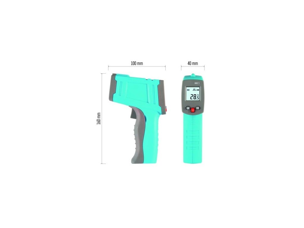 Infračervený teploměr je vhodný pro měření na obtížně přístupných místech, u pohyblivých objektů nebo v případě, kdy měřený objekt nemá být měřením poškozen. Teploměr zachycují tepelné záření v infračervené oblasti spektra a převádí ho na tepelnou hodnotu. Je vybaven zaměřovacím laserovým paprskem, který slouží k přesnému zacílení měřeného bodu.Tento produkt není vhodný pro měření tělesné teploty nebo horečky!