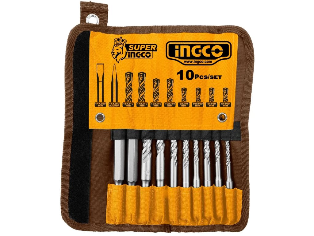 Ingco AKD2101 Sada sekáčů a vrtáků 10ks