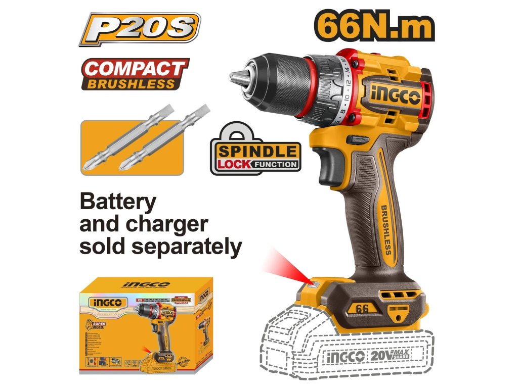 Ingco CDLI206681 AKU vrtací šroubovák 66 Nm, bez baterie a nabíječky