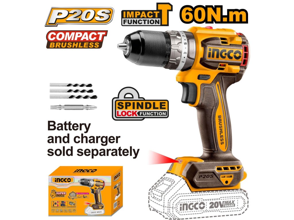 Ingco CIDLI206021 AKU vrtačka s příklepem, 60Nm, bez baterie a nabíječky