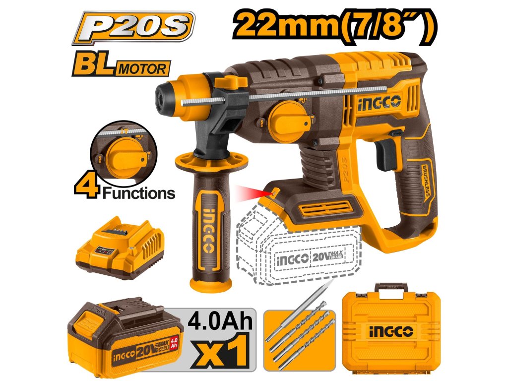 Ingco CRHLI202081 AKU vrtací kladivo vč. baterie a nabíječky
