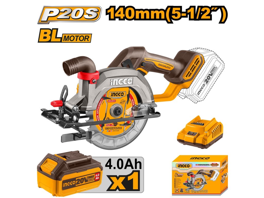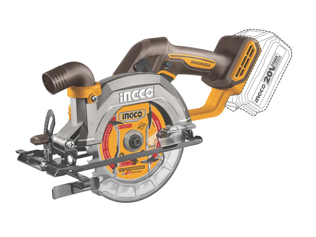 Akumulátorová kotoučová pila napětí 20V, ezkomutátorový motor, otáčky 6 300 ot./min, kompatibilní kotouč 140 x 20 mm.