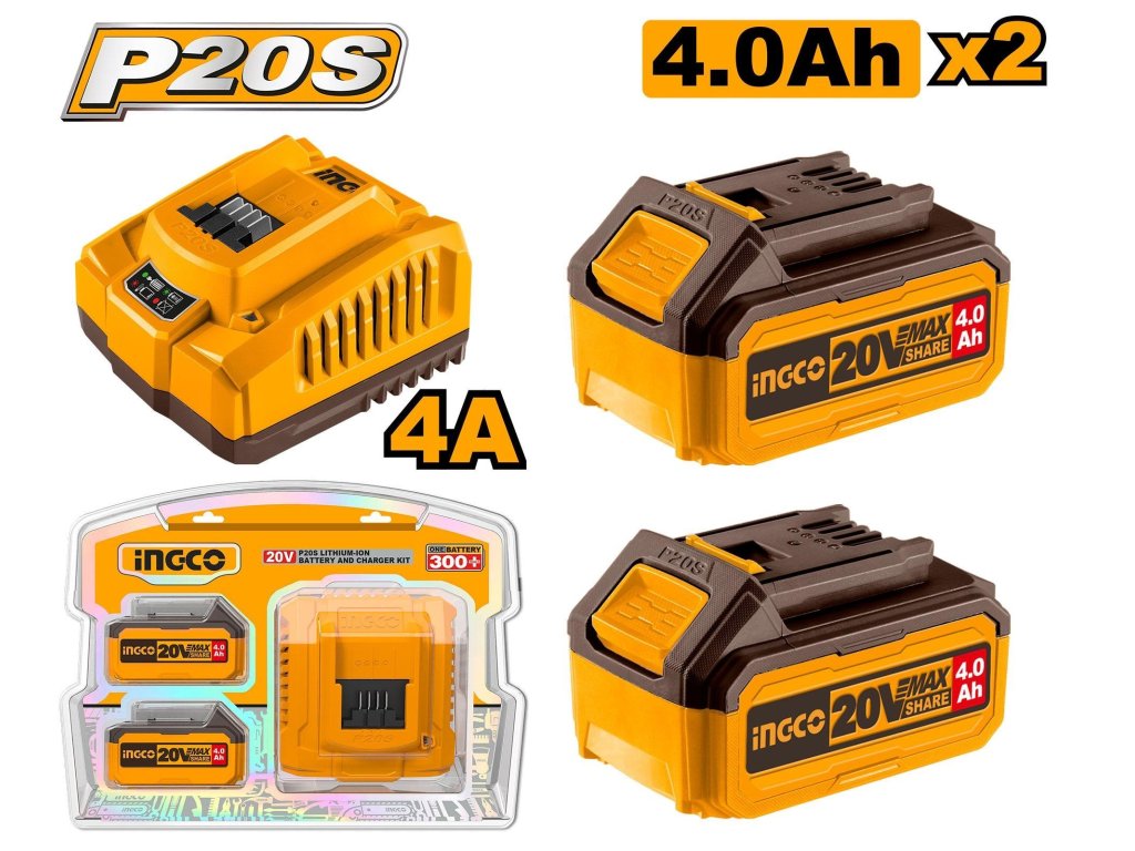 Ingco FBCPK1424E Set nabíječka + 2ks baterie 4,0A pro 20V Li-ion baterie