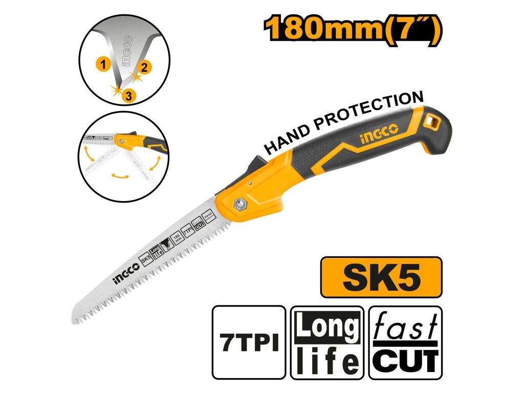 Pilka na dřevo prořezávací 7" 180 mm, SK5, 7 TPI, tepelné zpracování zubů, trojité přesně broušené zuby, s funkcí ochrany rukou