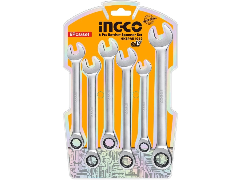 Ingco HKSPAR1062 Klíč oboustranný očkoplochý a plochý, sada 6ks, CrV