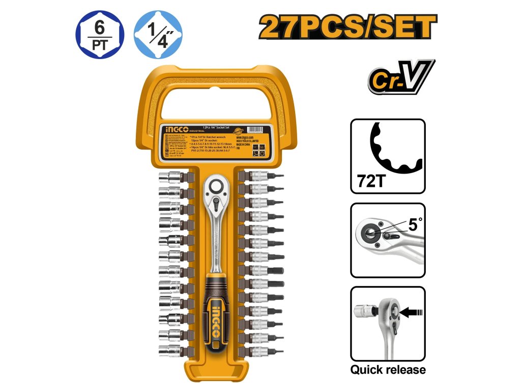 14 ks nástrčný klíč 1/4": SL4-5,5-7; PH1-2; T10-15-20-25-30; H4-5-6-7