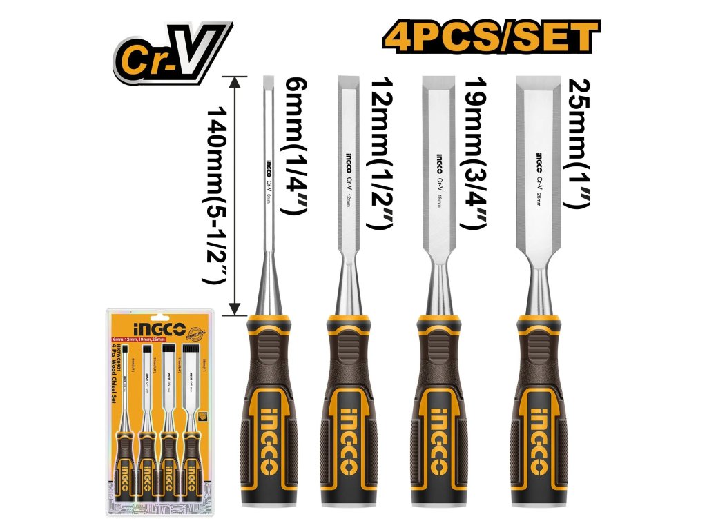 Ingco HKTWC0401 Dláto na dřevo sada 4ks CrV