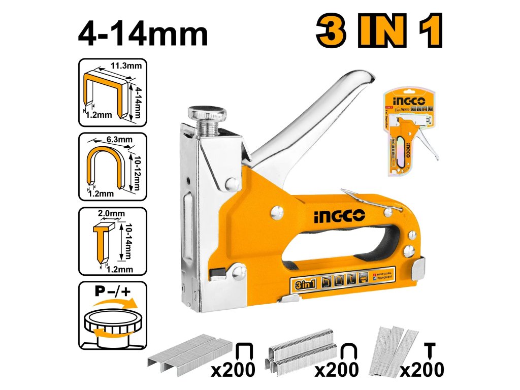 Ingco HSG1405 Pistole sponkovací kovová 3v1, 4-14mm, / U-spony i hřebíky