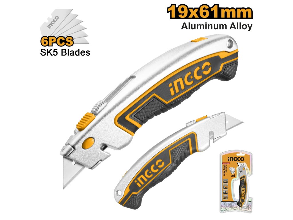 Ingco HUK6128 Nůž pracovní s vyměnitelnou čepelí 19mm 6x čepel