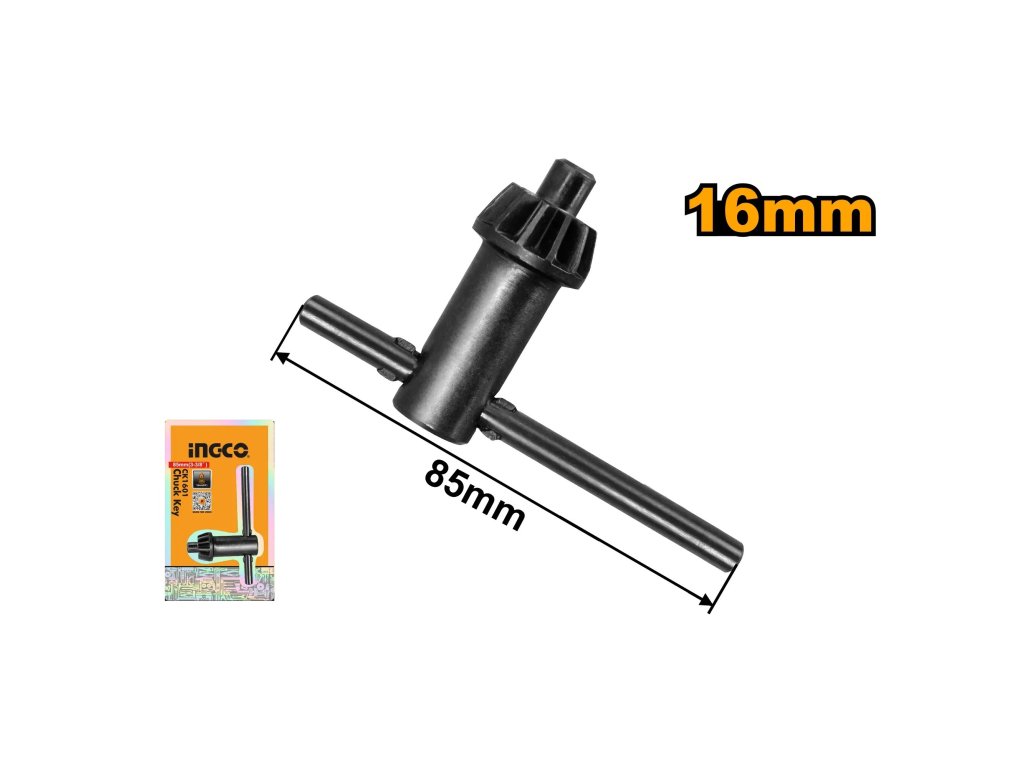 Tento klíč je určen pro utahování a povolování sklíčidel s kapacitou 16 mm. Díky robustní konstrukci a praktické délce 85 mm zajišťuje pevné a bezpečné upnutí vrtáků ve vaší vrtačce. Je ideálním pomocníkem při práci s klasickými sklíčidly, kde je vyžadováno přesné a pevné dotažení.