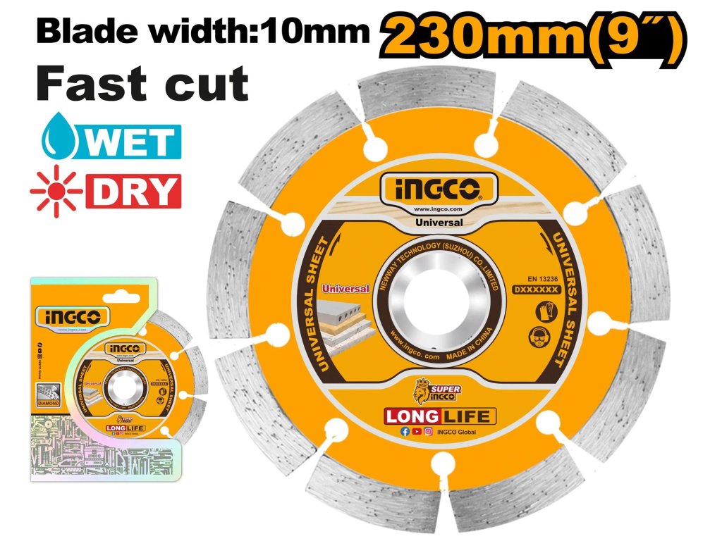 Tento výkonný řezný kotouč je určen pro efektivní řezání tvrdých materiálů, jako je kámen, beton, cihly, vápenec, žula a mramor. S průměrem 230 mm (9") a šířkou kotouče 10 mm nabízí vysokou stabilitu a dlouhou životnost při náročných řezných operacích. Kotouč je kompatibilní s většinou úhlových brusek a je vhodný pro mokré i suché řezání, což poskytuje flexibilitu při různých aplikacích. Balení v barevné krabici zajišťuje bezpečné uložení a snadný přenos.
