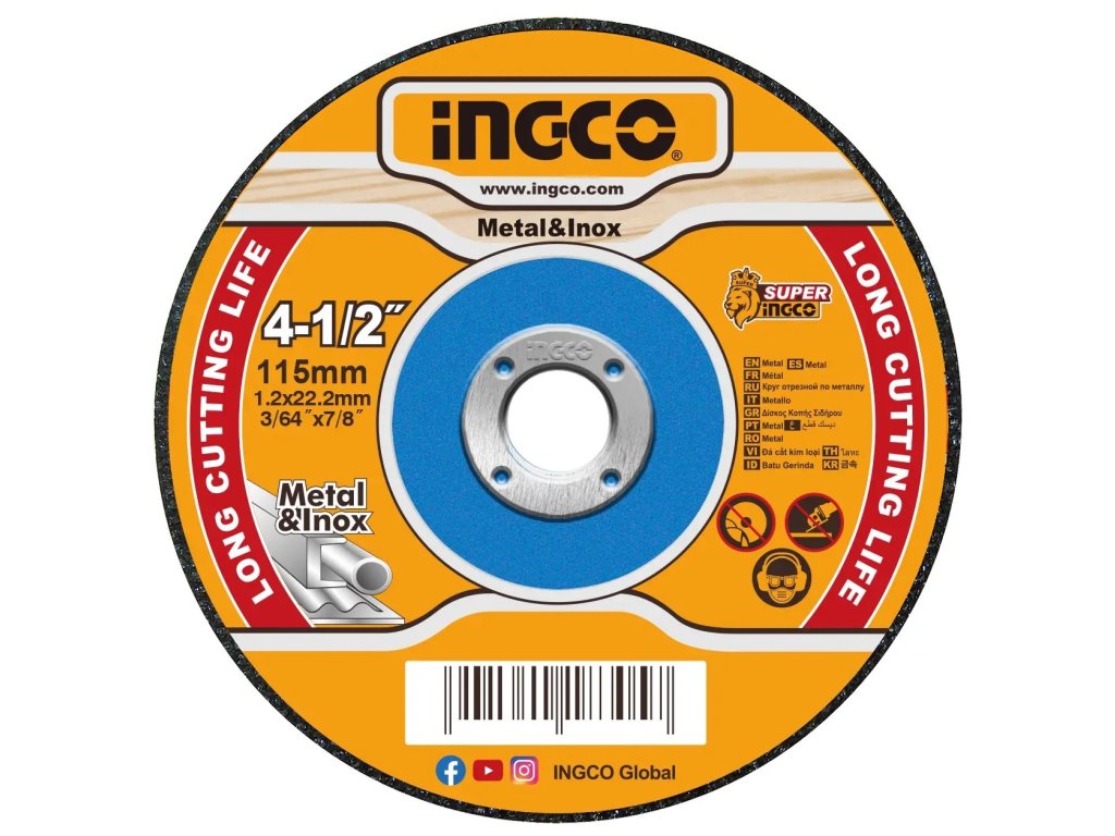 Vysoce kvalitní řezný kotouč o průměru 115 mm, tloušťce 1,2 mm a otvoru 22,2 mm je určen pro precizní a efektivní řezání různých kovových materiálů. Plochý střed kotouče zajišťuje stabilní upevnění a přesný řez s minimálním třením.
