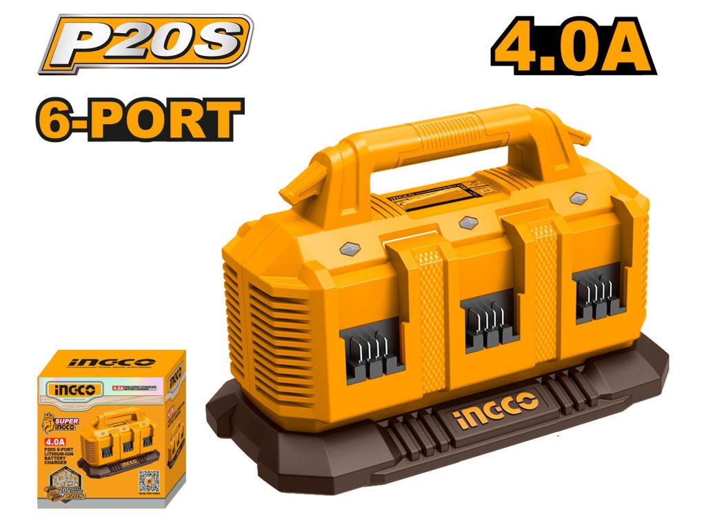 Ingco nabíječka na 6ks baterie 4,0A pro Li-ion baterie AKU 20V