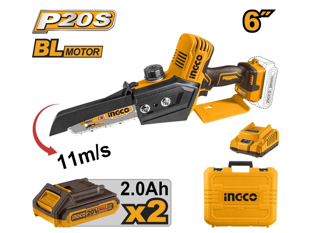 INGCO Pila řetězová mini AKU 6" vč. baterie 2ks a nabíječky