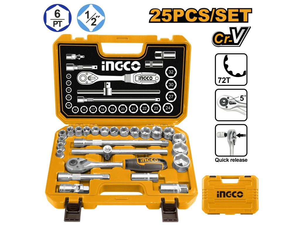 Ingco sada nástrčných hlavic 1/2" 25ks v kufříku