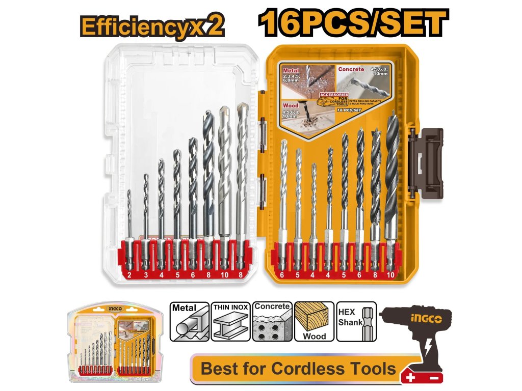 INGCO Sada vrtáků 16ks do kovu, zdiva a dřeva