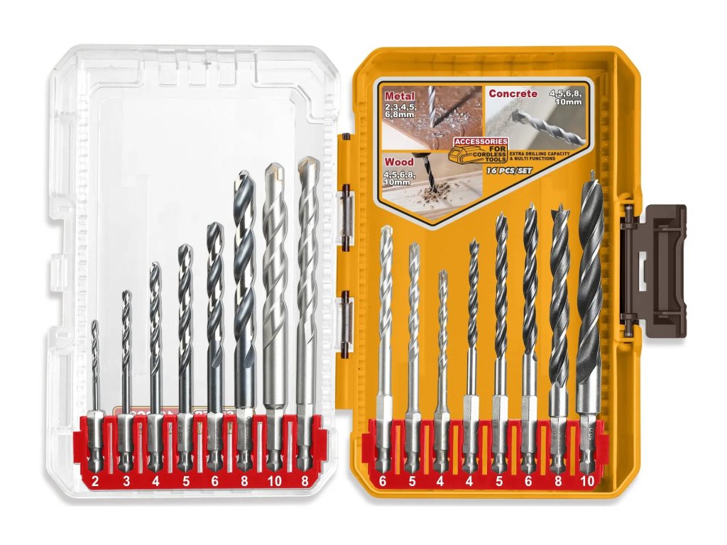 Sada 16 ks vrtáků na kov, zdivo a dřevo se šestihrannou stopkou