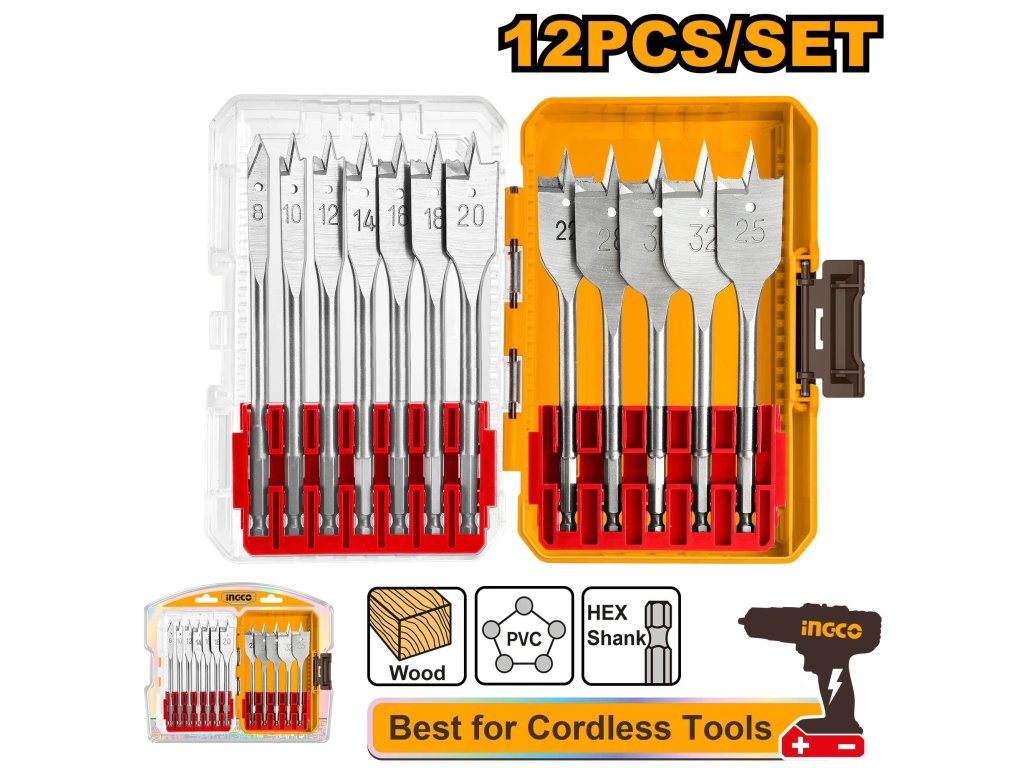 Ingco vrtáky do dřeva ploché, sada 12ks