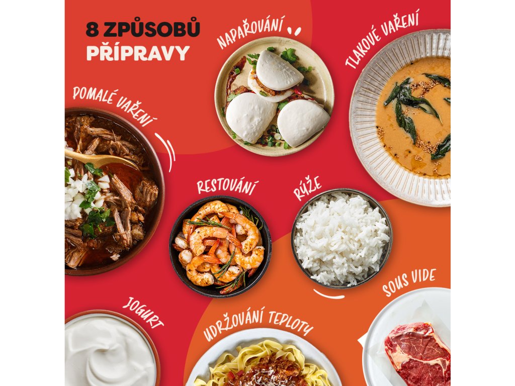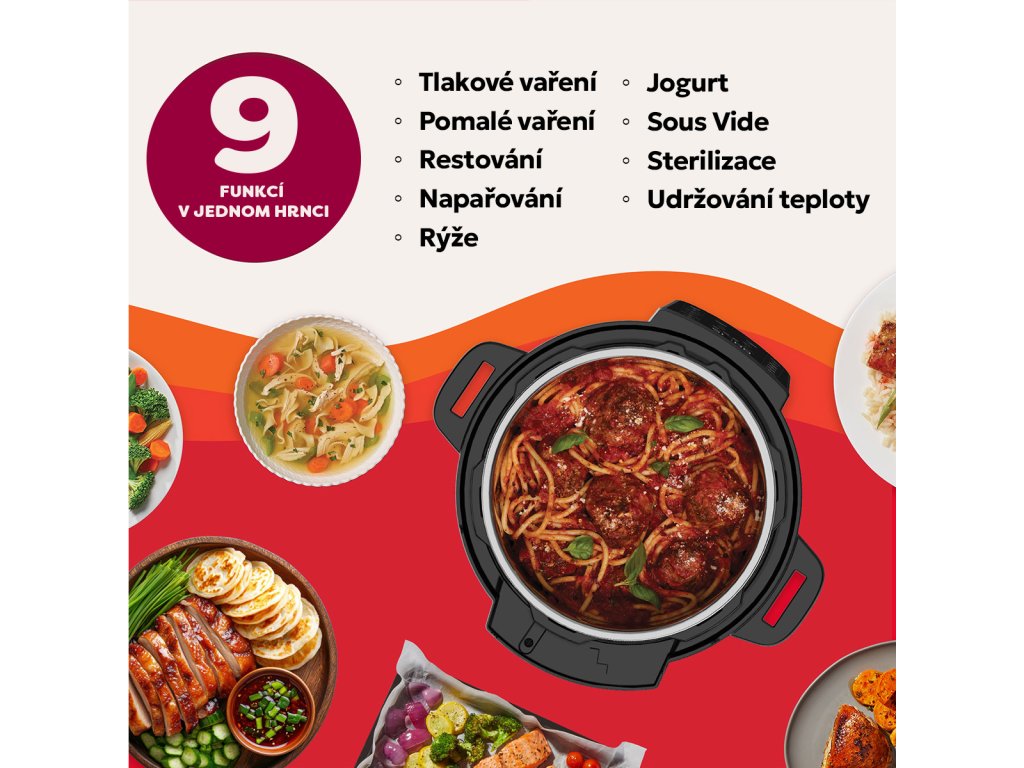 Zapomeňte na plnou kuchyň spotřebičů. Instant Pot Plus v sobě spojuje 9 funkcí: tlakové vaření, pomalé vaření, restování, napařování, ohřívání, vaření rýže, přípravu jogurtu, sous-vide a sterilizaci. Vše zvládnete s jedním přístrojem – jednoduše, rychle a s minimem práce.