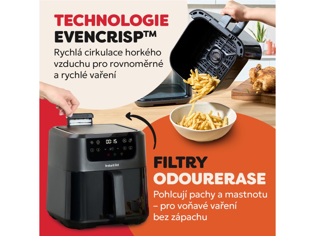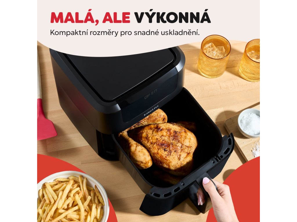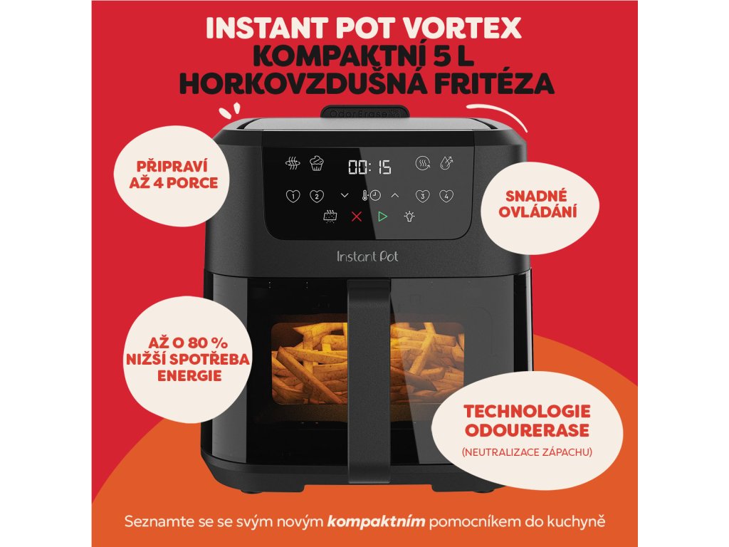 Instant Pot Vortex Compact 5l je ideální řešení pro menší kuchyně, páry a rodiny, které chtějí připravovat křupavé a chutné jídlo s minimem oleje. Díky chytrému designu, moderním funkcím a snadnému ovládání zvládnete vše od hranolek po šťavnaté maso, a to rychleji než v klasické troubě.